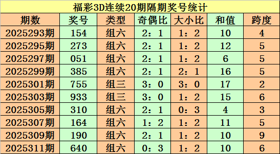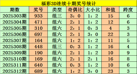 上期回顾:福彩3D第2025312期奖号:689。组六、大大大、偶偶奇。