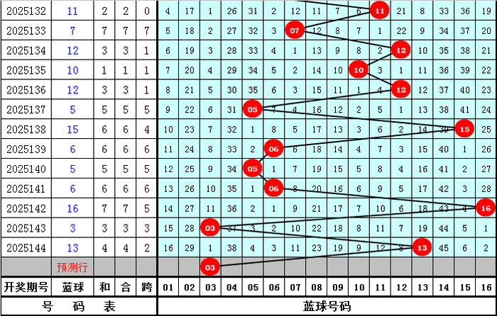 蓝球推荐:蓝球上期开出奖号13,为奇数蓝球,本期预计蓝球继续开出奇数号码,蓝球参考01、03、05、07、10。
